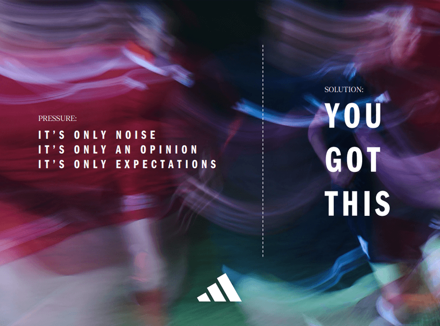 Adidas wanted to note the pressures their athlete partners experienced as well as those who inspired them to overcome it. The campaign put an emphasis on being a positive influence and the importance of having the right support around you.